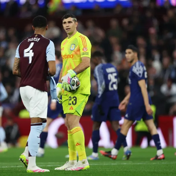 Tras despedirse del torneo, el arquero Emiliano Martínez se mostró «orgulloso» del equipo y de los hinchas. «Estoy muy orgulloso de este equipo y de todos los que forman parte del Aston Villa. Especialmente de la afición, que estuvo increíble esta noche», escribió el Dibu en una publicación de Instagram.